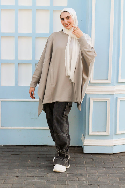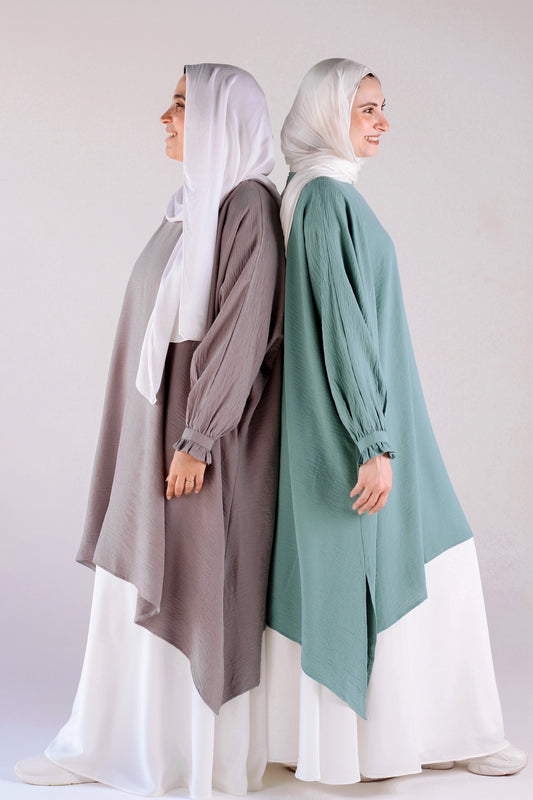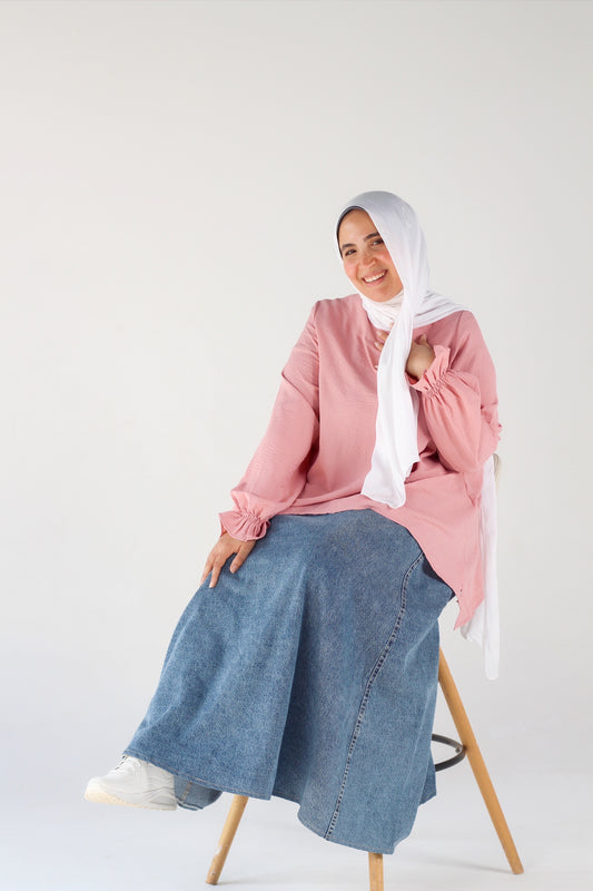 طقم أنيق من الجلد السويدي (بلوزة + تنورة)