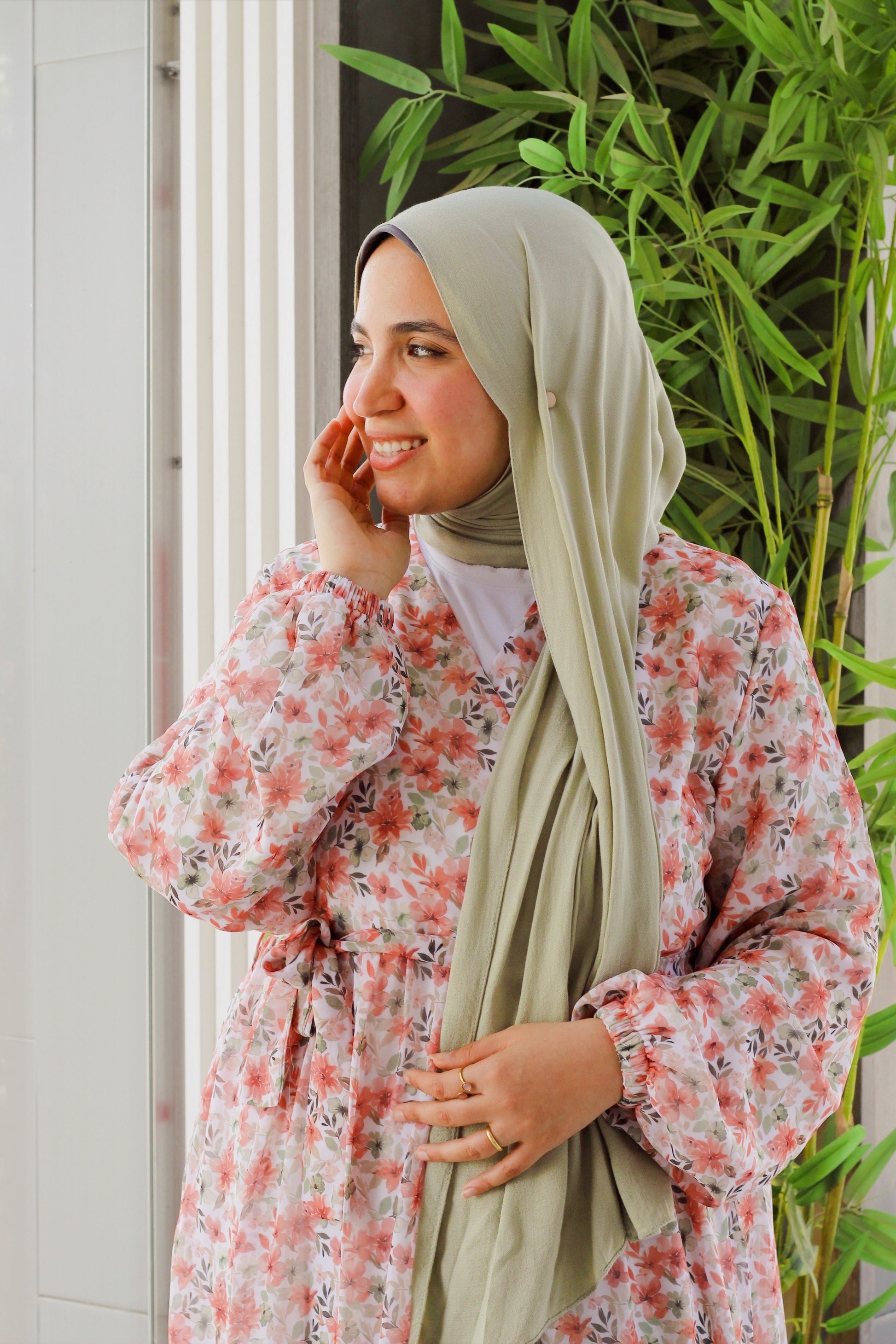 فستان شيفون مطبوع، يضفي لمسة من الرقي والرقة في إطلالتك. مع أكمام بلمسة واسعة مريحة.